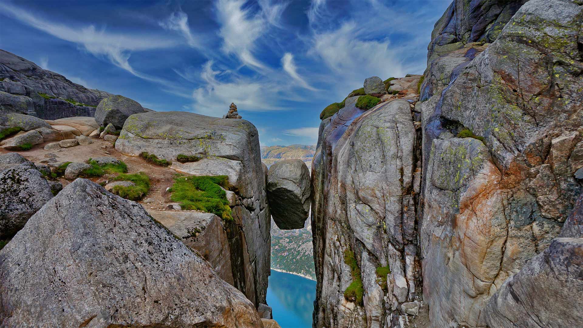 The Kjeragbolten boulder on the mountain Kjerag in Rogaland county